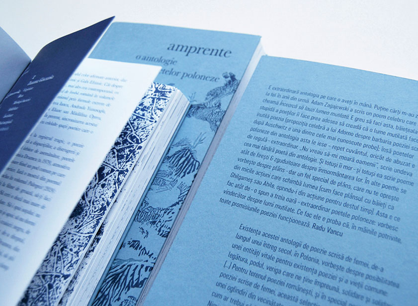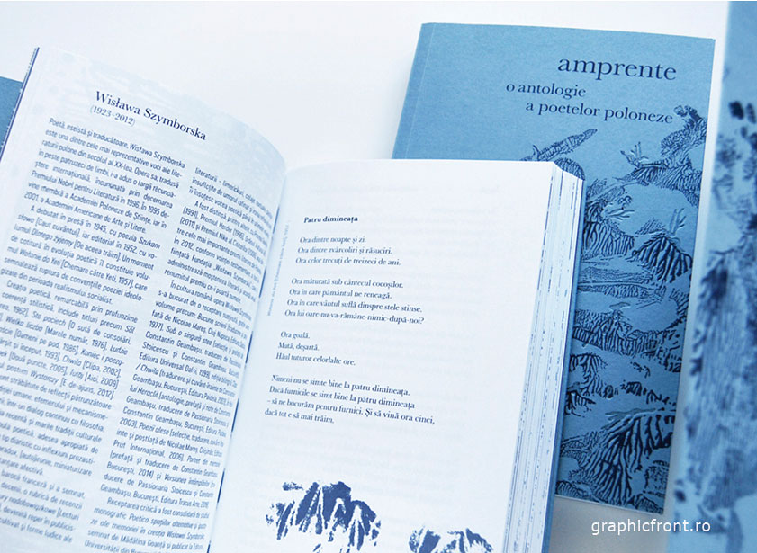 Volumul cu versuri semnate de 29 de poete este cu siguranță una dintre cele mai complexe și frumoase lucrări din tot ce am avut șansa să realizez până acum, în mulți ani, la Atelierul de grafică. Am avut nu doar satisfacția lucrului meticulos la conceptul grafic, la ilustrații și layout plus diverse detalii de producție, dar și bucuria de a experimenta complet liber și fără presiunea timpului. Un fel de situație ideală