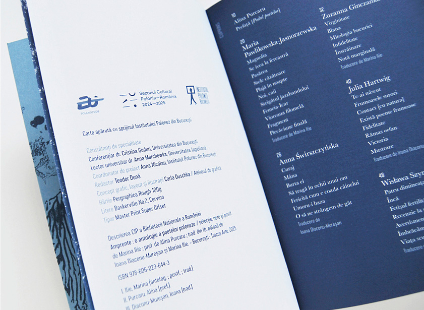 Mulțumesc Institutului Polonez pentru provocare, încredere și entuziasm. Sper ca această carte albastră, puternică & fragilă totodată să circule și să bucure cât mai multă lume.