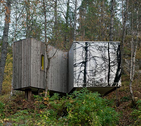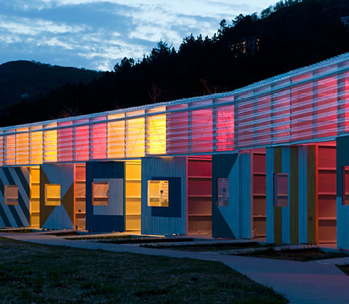 30 de proiecte, grupate în categorii diverse - construcții noi și renovări, intervenții, spații culturale și educative, de recreere și spații publice, trasee turistice, case pasive. Asemănătoare jucăriilor Brio, cu elemente de aluminiu și nervuri realizate din lemn de mesteacăn, expoziția are o structură modulară ce poate fi adaptată la spații diverse, care conferă fiecărei instalații un caracter diferit și individual.