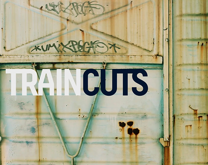 Train Cuts este un exemplu clasic de reconversie; altfel spus, este o intervenție plastică, grafică, sculpturală asupra unui vagon de marfă ce urma să fie casat. Un experiment care a durat 3 zile. Au fost decupate în forme diferite planurile de tablă ale vagonului, care pliate în plan vertical și orizontal au devenit mobilier, spațiu expozițional, decorațiune, ferestre. Astfel, vagonul a devenit un alt obiect, cu alte funcționalități, și cu un alt look. Mai multe detalii aici